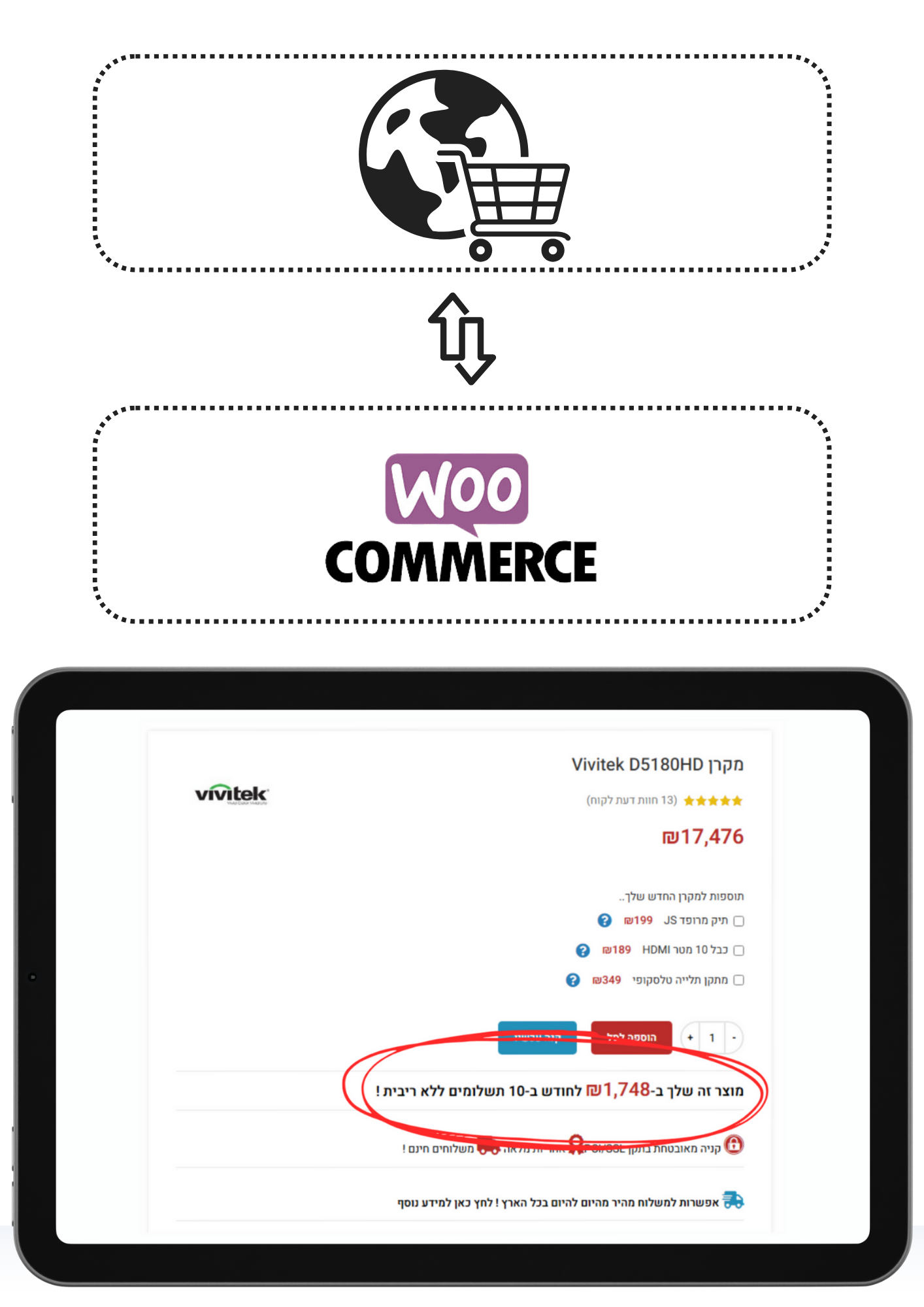 שירות חישוב מחיר לחודש בחלוקה לתשלומים בעמוד מוצר לחנות ווקומרס מאפשר לך להציג ללקוחות את המחיר לתשלום חודשי עבור המוצרים שלך.