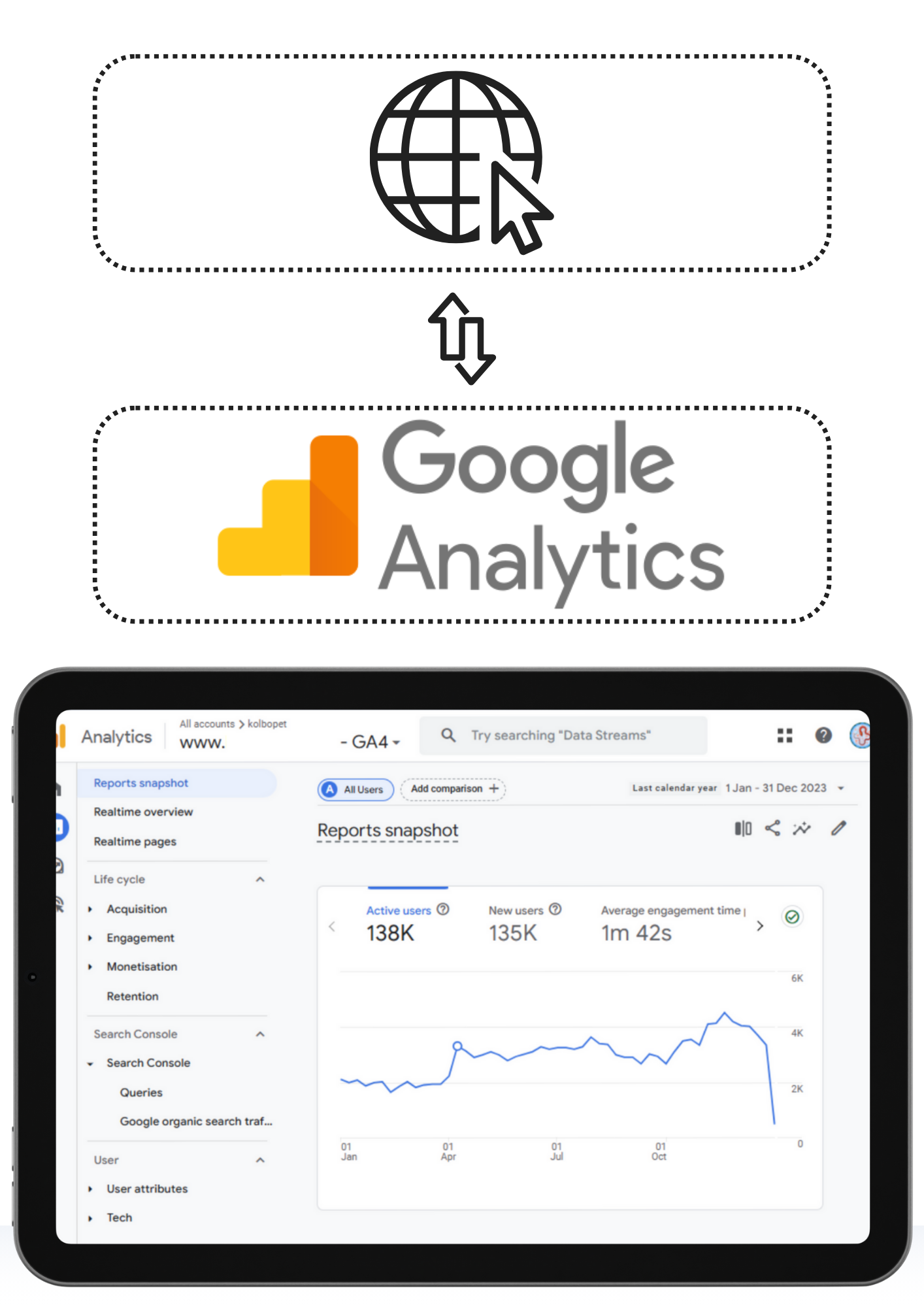 שירות חיבור אתר אינטרנט לגוגל אנליטיקס, שמאפשר לך לעקוב אחרי נתונים חשובים לגבי התנהגות הגולשים באתרך, כגון כמות ביקורים, דפים נצפים, זמני שהות, מקורות תנועה, והמרות.