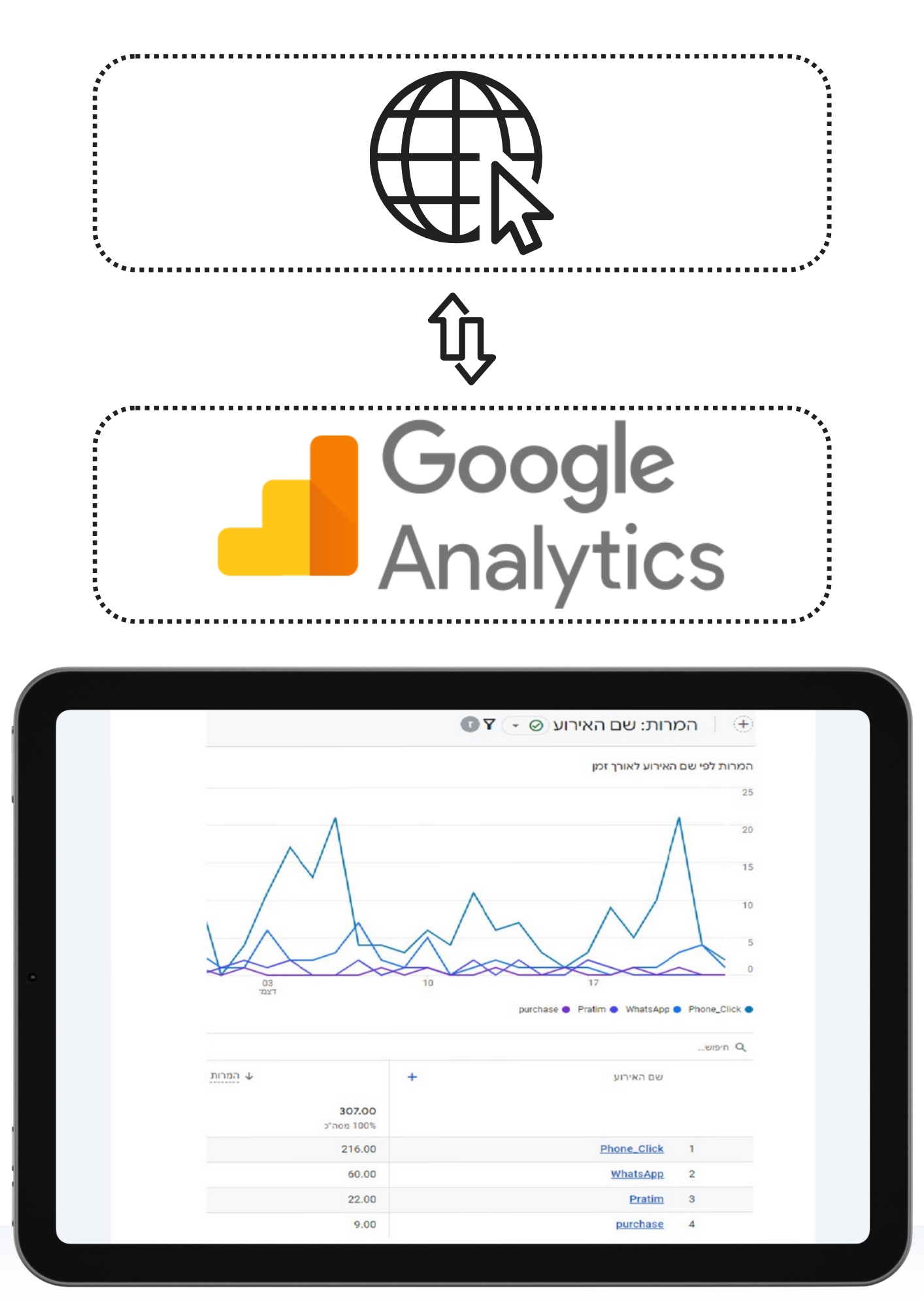 שירות התקנת ספירת המרות באתר אינטרנט, המאפשר לך לעקוב אחרי פעולות קריטיות באתר כגון רכישות, הרשמות, שליחת טפסים או צפיות בעמודים חשובים.